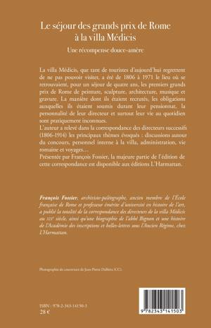 La villa Médicis a été de 1806 à 1971 le lieu où se retrouvaient, les premiers grands prix de Rome en peinture, sculpture, architecture, musique et gravure. L'auteur révèle dans cet ouvrage la correspondance des directeurs successifs (1806-1914) et les principaux thèmes évoqués : discussion autour du concours, personnel interne à la villa, administration, vie romaine et voyages...