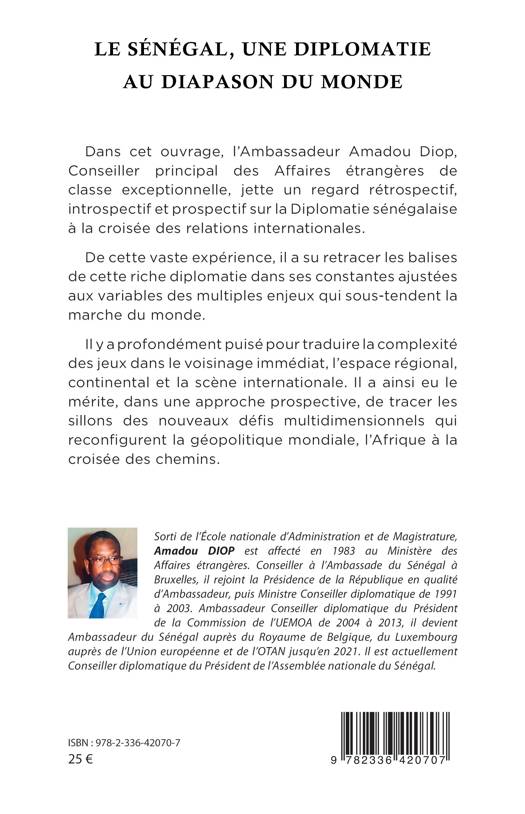 Dans cet ouvrage, l’Ambassadeur Amadou Diop, Conseiller principal des Affaires étrangères de classe exceptionnelle, jette un regard rétrospectif, introspectif et prospectif sur la Diplomatie sénégalaise à la croisée des relations internationales. De cette vaste expérience, il a su retracer les balises de cette riche diplomatie dans ses constantes ajustées aux variables des multiples enjeux qui sous-tendent la marche du monde. Il y a profondément puisé pour traduire la complexité des jeux dans le voisinage immédiat, l’espace régional, continental et la scène internationale. Il a ainsi eu le mérite, dans une approche prospective, de tracer les sillons des nouveaux défis multidimensionnels qui reconfigurent la géopolitique mondiale, l’Afrique à la croisée des chemins.