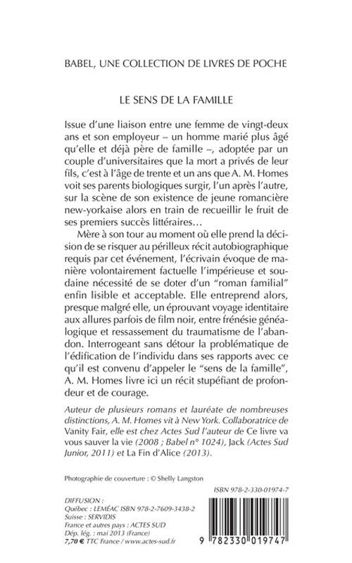 Enfant adoptée, A. M. Homes dut attendre l'âge de 31 ans pour rencontrer enfin ses parents biologiques. À travers le récit de cette expérience perturbante, l'écrivaine interroge sans détour la problématique de l'édification de l'individu. Un récit stupéfiant de profondeur et de courage, impitoyable de lucidité et qui, n'épargnant ni l'adopté ni "l'adoptant", replace la question de l'amour au coeur même de l'éternelle souffrance née du plus douloureux des abandons.