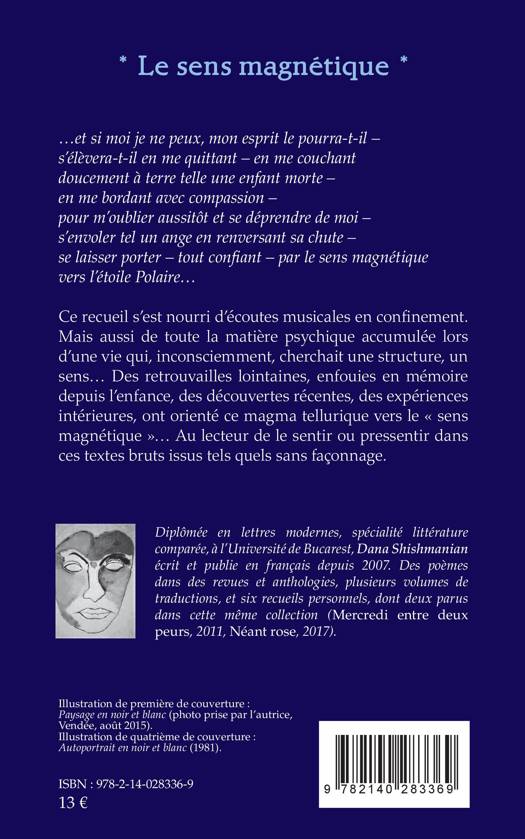 Ce recueil s'est nourri d'écoutes musicales en confinement. Mais aussi de toute la matière psychique accumulée lors d'une vie qui, inconsciemment, cherchait une structure, un sens... Des retrouvailles lointaines, enfouies en mémoire depuis l'enfance, des découvertes récentes, des expériences intérieures, ont orienté ce magma tellurique vers le « sens magnétique »... Au lecteur de le sentir ou pressentir dans ces textes bruts issus tels quels sans façonnage.