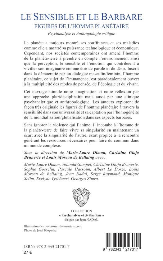 La planète a toujours montré ses souffrances et ses maladies comme elle a montré sa puissance technologique et économique. Cependant, nos sociétés contemporaines ont amené l'homme de la planète-terre à prendre en compte l'environnement ainsi que la perception, le sensible et l'émotion qui contribuent à vivifier son imaginaire comme être de parole et de désir. Inscrit dans la démocratie par un dialogue masculin/féminin, l'homme planétaire, ce sujet de l'immanence, est paradoxalement ouvert à la multiplicité des modes de pensée, de l'écologie et du vivant. Cet ouvrage stimule notre imagination et notre réflexion par une approche pluridisciplinaire mais aussi par une clinique psychanalytique et anthropologique.