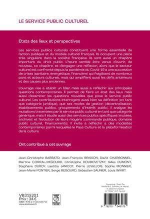 Les contributeurs de l'ouvrage, universitaires et professionnels du droit public, appellent à renforcer le service public de la culture, soulignant la nécessité d'une loi d'orientation pour améliorer la relation entre l'État et les collectivités territoriales. Ils mettent en avant l'importance de la qualité et de la diversité de la création artistique pour la France. L'ouvrage souligne également les défis contemporains du service public culturel, exacerbés par la crise du Covid-19, et la difficulté de définir ce qui est "culturel". Enfin, il propose une réflexion approfondie sur les modalités et le contexte juridique du service public culturel.