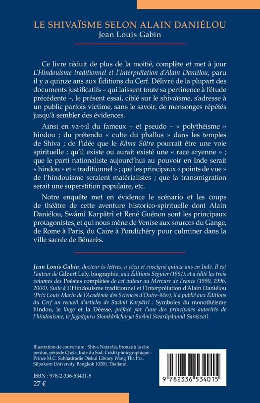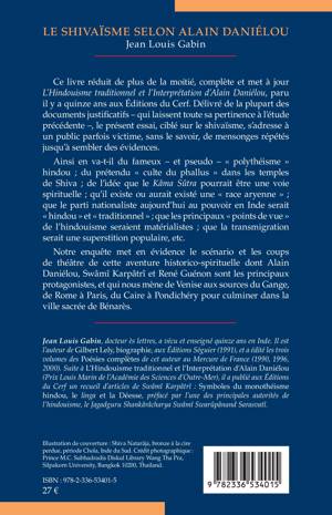 Ce livre réduit de plus de la moitié, complète et met à jour L'Hindouisme traditionnel et l'Interprétation d'Alain Daniélou, paru il y a quinze ans aux Éditions du Cerf. Délivré de la plupart des documents justificatifs - qui laissent toute sa pertinence à l'étude précédente -, le présent essai, ciblé sur le shivaïsme, s'adresse à un public parfois victime, sans le savoir, de mensonges répétés jusqu'à sembler des évidences. Ainsi en va-t-il du fameux - et pseudo - polythéisme hindou; du prétendu culte du phallus dans les temples de Shiva; de l'idée que le Kâma Sûtra pourrait être une voie spirituelle; qu'il existe ou aurait existé une race aryenne; que le parti nationaliste aujourd'hui au pouvoir en Inde serait hindou et traditionnel; que les principaux points de vue de l'hindouisme seraient matérialistes; que la transmigration serait une superstition populaire, etc. Notre enquête met en évidence le scénario et les coups de théâtre de cette aventure historico-spirituelle dont Alain Daniélou, Swâmî Karpâtrî et René Guénon sont les principaux protagonistes, et qui nous mène de Venise aux sources du Gange, de Rome à Paris, du Caire à Pondichéry pour culminer dans la ville sacrée de Bénarès.