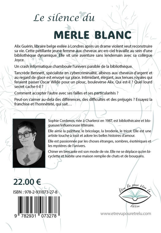 Alix Guérin, libraire belge exilée à Londres après un drame violent veut reconstruire sa vie. Cette pétillante jeune femme aux cheveux arc-en-ciel travaille au sein d’une bibliothèque dynamique. Elle vit une aventure sans lendemain avec sa collègue Joyce. Un crash informatique chamboule l’univers paisible de la bibliothèque. Tancrède Bennett, spécialiste en cybercriminalité, albinos aux cheveux d’argent et au regard de glace est envoyé sur place. Intimidant, élégant, aux tenues royales qui feraient passer Oscar Wilde pour un plouc, bouleverse Alix. Qui est-il ? Quel lourd secret cache-t-il ? Comment accepter l’autre avec ses failles et ses particularités ? Peut-on s’aimer au-delà des différences, des difficultés et des préjugés ? Essayez la franchise et l’honnêteté, qui sait…