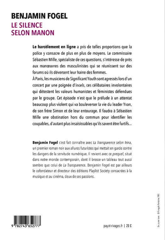 Dans les années 2025, le monde occidental se caractérise par une montée de l'agressivité sur les réseaux sociaux et en particulier des cas de cyber harcèlement, au point qu'une unité spéciale de la police, dirigée par le commissaire Sébastien Mille, a dû être mise en place. Sébastien Mille s'intéresse de près aux manoeuvres des groupes masculinistes en France. L'Amérique du Nord avait déjà connu dans les années 2010 des attentats dont les auteurs se réclamaient du mouvement "incel" (pour «involuntary celibate) »autrement dit des célibataires forcés qui conçoivent une haine des femmes et de la société contemporaine qu'ils jugent trop favorable au féminisme.