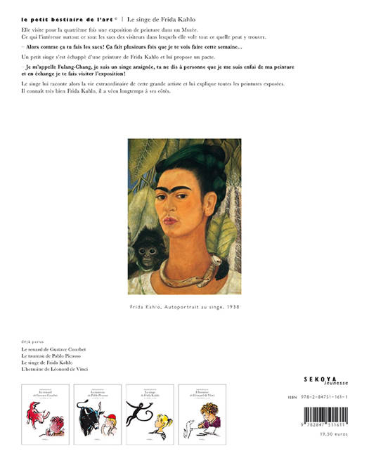 Elle visite pour la quatrième fois une exposition de peinture dans un Musée. Mais ce qui lintéresse surtout ce sont les sacs des visiteurs dans lesquels elle vole tout ce quelle peut y trouver. "Alors comme ça tu fais les sacs ! Ça fait plusieurs fois que je te vois faire cette semaine..." Un petit singe s'est échappé d'une peinture de Frida Kahlo et lui propose un pacte. "Je m'appelle Fulang-Chang, je suis un singe araignée, tu ne dis à personne que je me suis enfui de ma peinture et en échange je te fais visiter l'exposition !" Il lui raconte alors la vie extraordinaire de cette grande artiste et lui explique toutes les peintures exposées. Il connaît très bien Frida Kahlo, il a vécu longtemps à ses côtés. Quel singe passionnant !
