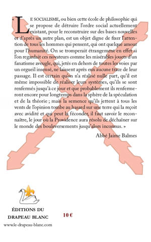 « Le socialisme, ou bien cette école de philosophie qui se propose de détruire l'ordre social actuellement existant, pour le reconstruire sur des bases nouvelles et d'après un autre plan, est un objet digne de fixer l'attention de tous les hommes qui pensent, qui ont quelque amour pour l'humanité. On se tromperait étrangement en effet si l'on regardait ces novateurs comme les misérables jouets d'un fanatisme aveugle [...]. Il est certain qu'on n'a réalisé nulle part, qu'il est même impossible de réaliser leurs systèmes, qu'ils se sont renfermés jusqu'à ce jour et que probablement ils se renfermeront encore pour longtemps dans la sphère de la spéculation et de la théorie , mais la semence qu'ils jettent à tous les vents de l'opinion tombe au hasard sur une terre qui la reçoit avec avidité et qui peut la féconder, il faut savoir le reconnaître, le jour où la Providence aura résolu de déchaîner sur le monde des bouleversements jusqu'alors inconnus » (abbé Jaime Balmes).