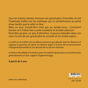 Le soleil sur la colline est un album jeunesse qui aborde tout en douceur et sagesse la question du deuil, en faisant appel à la force de la transmission intergénérationnelle et à la beauté de la nature vibrante. Le texte a été adapté à la lecture pour les enfants dyslexiques et constitue plus généralement un bon support d’apprentissage