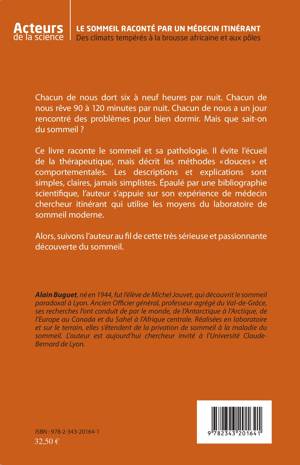 Chacun de nous dort six à neuf heures par nuit. Chacun de nous rêve 90 à 120 minutes par nuit. Chacun de nous a un jour rencontré des problèmes pour bien dormir. Mais que sait-on du sommeil ? Ce livre raconte le sommeil et sa pathologie. Il évite l'écueil de la thérapeutique, mais décrit les méthodes « douces » et comportementales. Épaulé par une bibliographie scientifique, l'auteur s'appuie sur son expérience de médecin chercheur itinérant qui utilise les moyens du laboratoire de sommeil moderne.