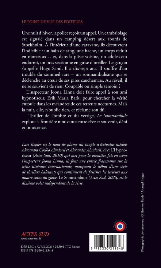 Une nuit d'hiver, la police reçoit un appel. Un cambriolage est signalé dans un camping désert aux abords de Stockholm. À l'intérieur d'une caravane, ils découvrent l'indicible : un bain de sang, une hache, un corps réduit en morceaux... et, dans la pièce voisine, un adolescent endormi, un bras sectionné en guise d'oreiller. Le garçon s'appelle Hugo Sand. Il a dix-sept ans. Il souffre d'un trouble du sommeil rare - un somnambulisme qui se déclenche au coeur de ses pires cauchemars. Au réveil, il ne se souvient de rien. Coupable ou simple témoin ? L'inspecteur Joona Linna doit faire appel à son ami hypnotiseur, Erik Maria Bark, pour chercher la vérité enfouie dans les méandres de ces terreurs nocturnes. Mais la nuit, elle, n'oublie rien, et réclame son dû. Thriller de l'ombre et du vertige, "Le Somnambule" explore la frontière mouvante entre rêve et souvenir, déni et innocence.