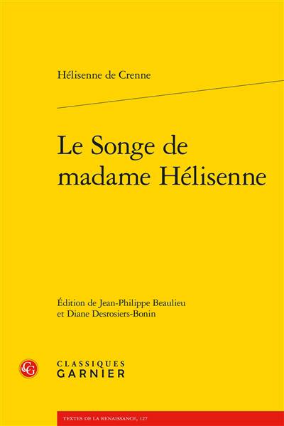 Parmi les ouvrages attribués à Hélisenne de Crenne, les Angoysses douloureuses qui procedent d'amour (1538) ainsi que les Epistres familieres et invectives (1539) ont surtout retenu l'attention des commentateurs. Le Songe de madame Helisenne, paru en 1540, demeure quant à lui peu connu et peu étudié. Fondée sur l'édition princeps parue chez Denis Janot, dont elle reproduit les gravures, la présente édition critique rend disponible pour la première fois cette version du texte éclairée par les variantes des éditions de 1541, 1543, 1551 et 1560. Une introduction situe également les enjeux principaux de l'ouvrage et son inscription dans la tradition du songe allégorique.