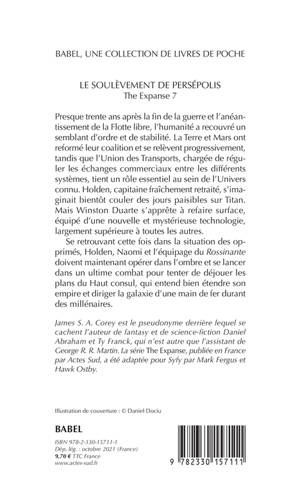 Presque trente ans après la fin de la guerre et l'anéantissement de la Flotte libre, l'humanité a recouvré un semblant d'ordre et de stabilité. La Terre et Mars ont reformé leur coalition et se relèvent progressivement, tandis que l'Union des transports, chargée de réguler les échanges commerciaux entre les différents systèmes, tient un rôle essentiel au sein de l'Univers connu. Holden, capitaine fraîchement retraité, s'imaginait bientôt couler des jours paisibles sur Titan. Mais Winston Duarte s'apprête à refaire surface, équipé d'une nouvelle et mystérieuse technologie, largement supérieure à toutes les autres. Se retrouvant cette fois dans la situation des opprimés, Holden, Naomi et l'équipage du Rossinante doivent maintenant opérer dans l'ombre et se lancer dans un ultime combat pour tenter de déjouer les plans du Haut consul, qui entend bien étendre son empire et diriger la galaxie d'une main de fer durant des millénaires.