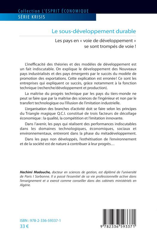 L'inefficacité des théories et des modèles de développement est un fait indiscutable. On explique le développement des Nouveaux pays industrialisés et des pays émergents par le succès du modèle de promotion des exportations. Cette explication est erronée ! Ce sont les entreprises qui expliquent ce succès, grâce notamment à la fonction technique (recherche/développement et production). La maîtrise du progrès technique par les pays du tiers-monde ne peut se faire que par la maîtrise des sciences de l'ingénieur et non par le transfert technologique ou l'illusion de l'imitation industrielle. L'organisation des branches d'activité doit se faire selon les principes du Triangle magique Q.C.I. constitué de trois facteurs de décollage économique la qualité, la compétition et l'imitation innovante. Dans l'avenir, les pays qui réalisent des performances indiscutables dans les domaines technologiques, économiques, sociaux et environnementaux, entreront dans la phase du métadéveloppement. Dans les pays non développés, l'esthétisation de l'environnement et de la société est de nature à contribuer à leur progrès...