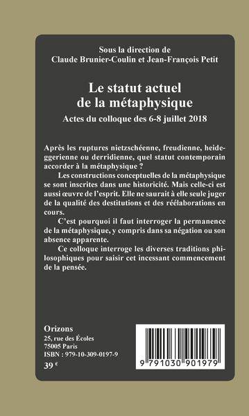 Après les ruptures nietzschéenne, freudienne, heideggerienne ou derridienne, quel statut contemporain accorder à la métaphysique ? Les constructions conceptuelles de la métaphysique se sont inscrites dans une historicité. Mais celle-ci est aussi oeuvre de l'esprit. Elle ne saurait à elle seule juger de la qualité des destitutions et des réélaborations en cours. C'est pourquoi il faut interroger la permanence de la métaphysique, y compris dans sa négation ou son absence apparente.