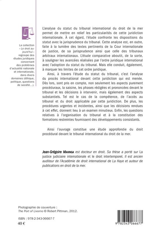 Ce livre met en relief les particularités du tribunal international du droit de la mer et aboutit à l'analyse du procès international devant cette juridiction. Sont donc pris en compte les aspects purement procéduraux (saisine, phases rédigées et prononcées devant le tribunal, décisions à intervenir) mais aussi des aspects substantiels (compétence, accès au tribunal et droit applicable). Les procédures urgentes et incidentes, les questions relatives à l'organisation du tribunal et à la constitution des formations restreintes sont aussi étudiées.