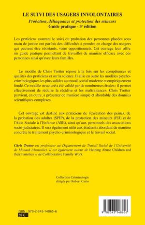 Les praticiens assurant le suivi ou probation des personnes placées sous main de justice ont parfois des difficultés à prendre en charge des usagers qui peuvent être résistants, voire oppositionnels. Cet ouvrage leur offre un guide pratique pour travailler de manière efficace avec ces personnes et leurs familles. Le modèle présenté repose sur les compétences et qualités des praticiens et sur la science. Il allie modèles psychocriminologiques et travail social.