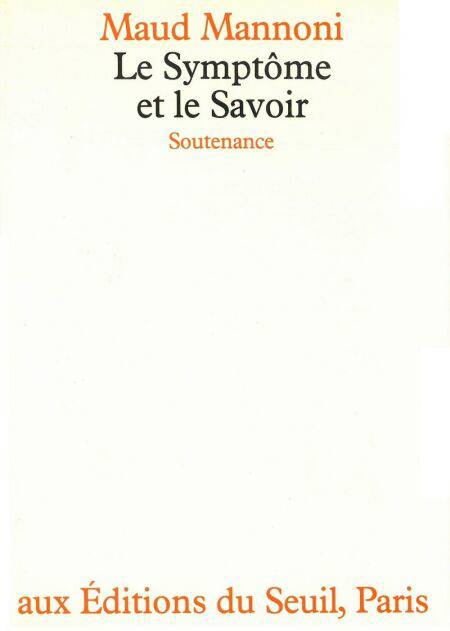 Sous le titre Le Symptôme et le savoir, Maud Mannoni s'est exposée à l'Université. C'est d'une place d'analysant qu'elle a présenté sa candidature au doctorat d'Etat, en faisant de sa soutenance un symptôme – face au savoir.