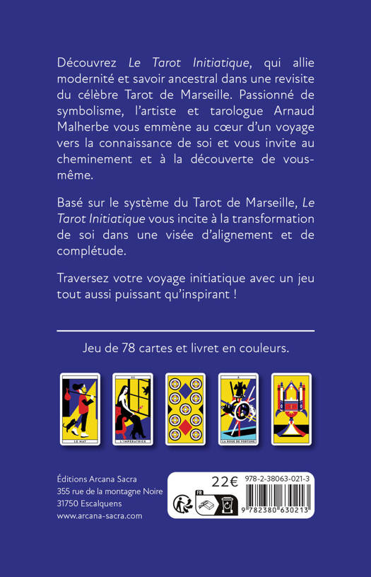 Découvrez Le Tarot initiatique, qui allie modernité et savoir ancestral dans une revisite du célèbre Tarot de Marseille. Passionné de symbolisme, l'artiste et tarologue Arnaud Malherbe vous emmène au coeur d’un voyage vers la connaissance de soi et vous invite au cheminement et à la découverte de vous-même. Basé sur le système du Tarot de Marseille, Le Tarot Initiatique vous incite à la transformation de soi dans une visée d’alignement et de complétude. Traversez votre voyage initiatique avec un jeu tout aussi puissant qu'inspirant !