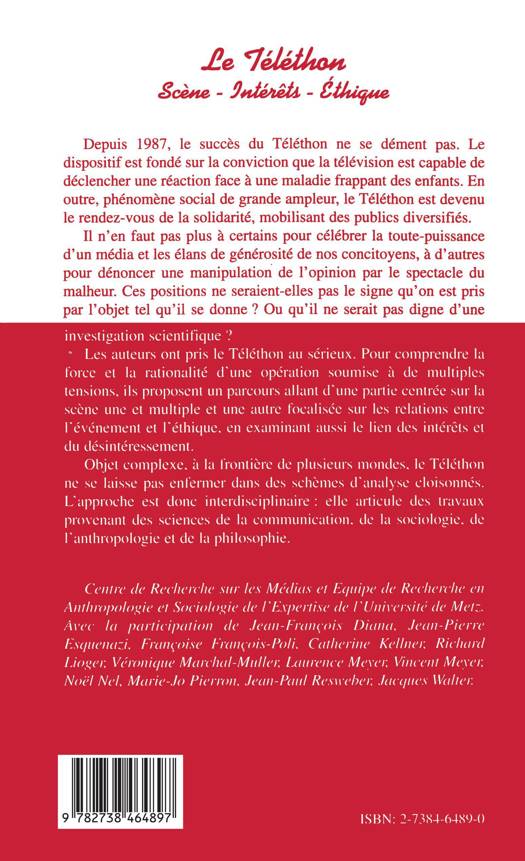 Depuis 1987, le succès du Téléthon ne se dément pas. Le dispositif est fondé sur la conviction que la télévision est capable de déclencher une réaction face à une maladie frappant les enfants. En outre, phénomène social de grande ampleur, le Téléthon est devenu le rendez-vous de la solidarité, mobilisant des publics diversifiés. Il n'en faut pas plus à certains pour célébrer la toute-puissance d'un média et les élans de générosité de nos concitoyens, à d'autres pour dénoncer une manipulation de l'opinion par le spectacle du malheur. Ces positions ne seraient-elles pas le signe qu'on est pris par l'objet tel qu'il se donne ? Ou qu'il ne serait pas digne d'une investigation scientifique ? Les auteurs ont pris de Téléthon au sérieux. Pour comprendre la force et la rationalité d'une opération soumise à de multiples tensions.