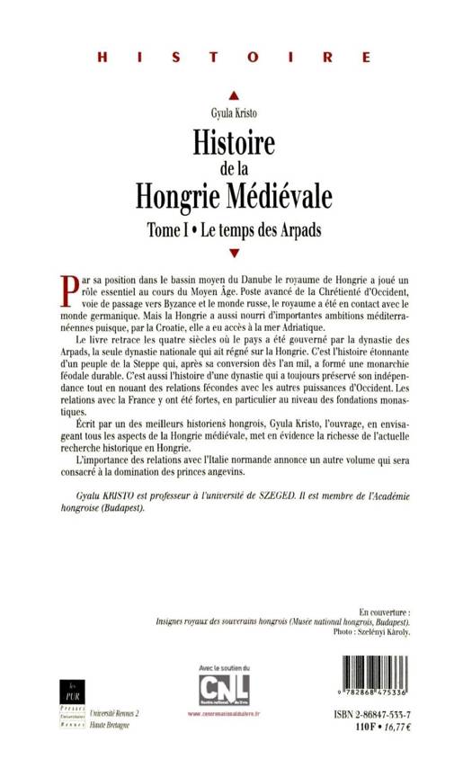 Écrit par un des meilleurs historiens hongrois, Gyula Kristo, l'ouvrage, en envisageant tous les aspects de la Hongrie médiévale, met en évidence la richesse de l'actuelle recherche historique en Hongrie.