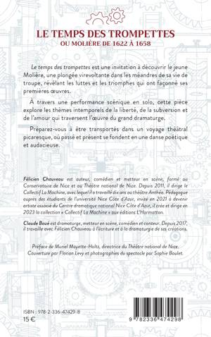 Le temps des trompettes est une invitation à découvrir le jeune Molière, une plongée virevoltante dans les méandres de sa vie de troupe, révélant les luttes et les triomphes qui ont façonné ses premières oeuvres. À travers une performance scénique en solo, cette pièce explore les thèmes intemporels de la liberté, de la subversion et de l'amour qui traversent l'oeuvre du grand dramaturge. Préparez-vous à être transportés dans un voyage théâtral picaresque, où passé et présent se fondent en une danse poétique et audacieuse.