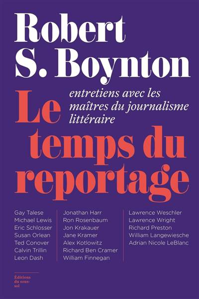 Près de cinquante ans après ce manifeste du Nouveau Journalisme, Robert S. Boynton reprend le flambeau et en actualise le propos en exposant l'importance et la variété du journalisme littéraire contemporain. À travers une série d'entretiens avec les grands noms du reportage, de William Finnegan à Gay Talese, de Michael Lewis à Jane Kramer, l'ouvrage dessine un art du reportage comme l'on écrirait un art du roman. Qu'il s'agisse de Ted Conover exposant ses techniques d'immersion dans une prison d'État, ou d'Adrian Nicole LeBlanc racontant dix ans de vie avec une famille du Bronx, ces conversations à bâtons rompus avec des légendes du reportage forment un bréviaire passionnant du genre.