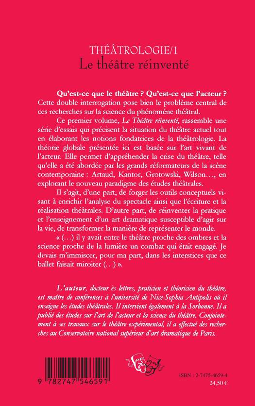 Qu'est-ce que le théâtre ? Qu'est-ce que l'acteur ? Cette double interrogation pose bien le problème central de ces recherches sur la science du phénomène théâtral. Ce premier volume, rassemble une série d'essais qui précisent la situation du théâtre actuel tout en élaborant les notions fondatrices de la théâtrologie. La théorie globale présentée ici est basée sur l'art vivant de l'acteur. Elle permet d'appréhender la crise du théâtre, telle qu'elle a été abordée par les grands réformateurs de ls scène contemporaines : Artaud, Kantor, Grotowski, Wilson....