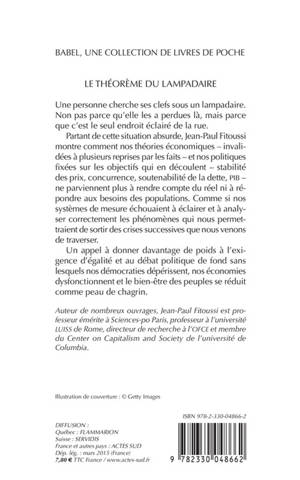 L'économie aujourd'hui se réduit à ce qu'elle est capable de rationnaliser et donc d'éclairer. Elle n'est pas apte à prendre en compte ce qui la dépasse ou plus exactement ce qu'elle ne peut mathématiquement mettre en lumière : les approches sociales, humaines, environnementales. Prisonnière du "théorème du lampadaire", concept inventé par l'auteur, elle va de crise en crise. Un essai incisif qui propose des pistes éclairantes pour enfin affronter réellement la crise.