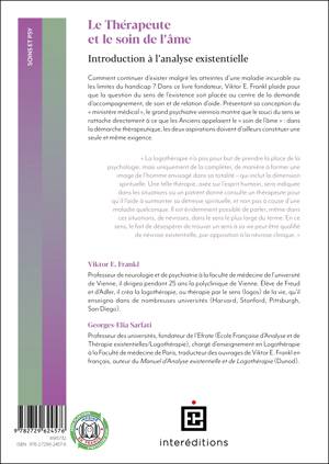 Ärztliche Seelsorge (en anglais The Doctor and the Soul) est l’ouvrage inaugural de Frankl, commencé avant la guerre, perdu, réécrit de mémoire et validé pour ainsi dire par son auteur dans les camps de la mort du régime nazi. Frankl décèle en l’homme un besoin de sens de l’existence, plus fondamental que la pulsion sexuelle ou que le désir de reconnaissance. Opprimé ou refoulé ce besoin se répercute de fait en addictions ou perversions, mais aussi plus spécifiquement en névroses d’origine mentale, dépression et désespoir devant l’absurdité d’une vie confrontée à la souffrance. Il importe donc que le thérapeute réinvestisse cet étage supérieur de l’édifice humain, traditionnellement et fonctionnellement désigné par le terme d’âme, non à la manière d’un gourou ou d’un religieux, mais pour accompagner le patient dans le recouvrement de sa capacité à intégrer tous les aspects de la réalité dans sa recherche du bonheur.