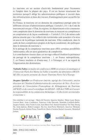 Facteur structurant pour l'économie et l'emploi, le tourisme, l'est aussi pour les territoires puisqu'il oblige les administrations publiques à investir dans des travaux d'aménagement pour accueillir les touristes. En France, le tourisme est un domaine de compétence partagé entre les différents niveaux d'administration publique. Ce partage peut offrir certaines possibilités intéressantes, mais il est aussi générateur de complexités. Ces contributions étudient la pertinence du partage de la compétence tourisme : 1. en France métropolitaine, 2. en France insulaire et d'outre-mer, 3. à l'étranger, et 4. au regard de l'organisation des destinations.