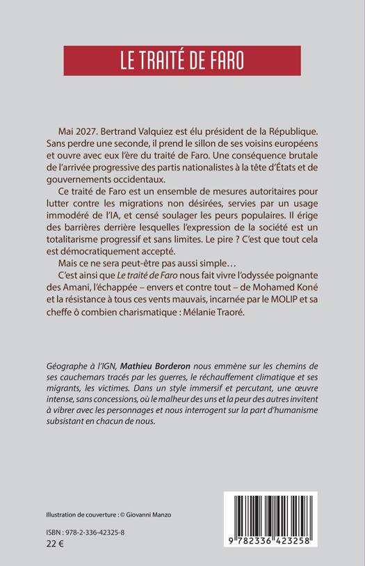 Mai 2027. Bertrand Valquiez est élu président de la République. Sans perdre une seconde, il prend le sillon de ses voisins européens et ouvre avec eux l'ère du traité de Faro. Une conséquence brutale de l'arrivée progressive des partis nationalistes à la tête d'États et de gouvernements occidentaux. Ce traité de Faro est un ensemble de mesures autoritaires pour lutter contre les migrations non désirées, servies par un usage immodéré de l'IA, et censé soulager les peurs populaires. Il érige des barrières derrière lesquelles l'expression de la société est un totalitarisme progressif et sans limites. Le pire ? C'est que tout cela est démocratiquement accepté. Mais ce ne sera peut-être pas aussi simple... C'est ainsi que Le traité de Faro nous fait vivre l'odyssée poignante des Amani, l'échappée - envers et contre tout - de Mohamed Koné et la résistance à tous ces vents mauvais, incarnée par le MOLIP et sa cheffe ô combien charismatique: Mélanie Traoré.