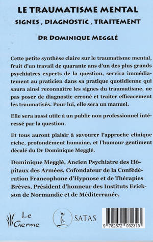 Cette petite synthèse claire sur le traumatisme mental, fruit d'un travail de quarante ans d'un des plus grands psychiatres experts de la question, servira immédiatement au praticien dans sa pratique quotidienne qui saura ainsi reconnaître les signes du traumatisme, ne pas poser de diagnostic erroné et traiter efficacement les traumatisés. Pour lui, elle sera un manuel. Elle sera aussi utile à un public non professionnel intéressé par la question. Et tous auront plaisir à savourer l'approche clinique riche, profondément humaine, et l'humour gentiment décalé du Dr Dominique Megglé.