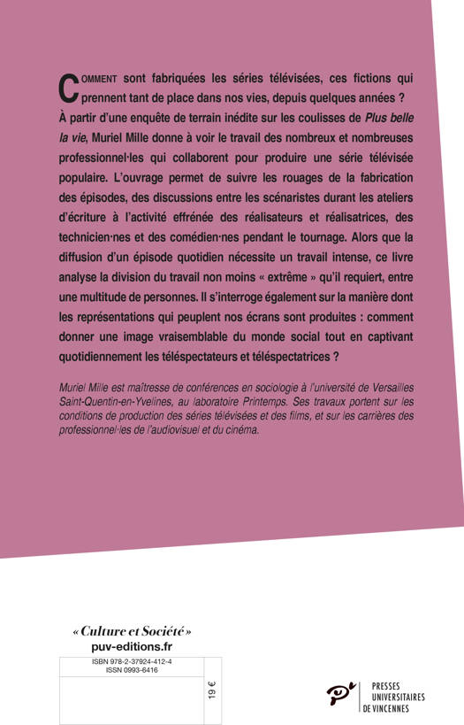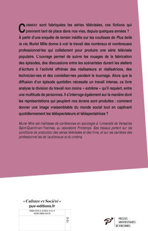 À partir d’une enquête de terrain inédite sur les coulisses de Plus belle la vie, Muriel Mille donne à voir le travail des nombreux et nombreuses professionnel·les qui collaborent pour produire une série télévisée populaire. L’ouvrage permet de suivre les rouages de la fabrication des épisodes, des discussions entre les scénaristes durant les ateliers d’écriture à l’activité effrénée des réalisateurs et réalisatrices, des technicien·nes et des comédien·nes pendant le tournage. Alors que la diffusion d’un épisode quotidien nécessite un travail intense, ce livre analyse la division du travail non moins « extrême » qu’il requiert, entre une multitude de personnes. Il s’interroge également sur la manière dont les représentations qui peuplent nos écrans sont produites : comment donner une image vraisemblable du monde social tout en captivant quotidiennement les téléspectateurs et téléspectatrices ?