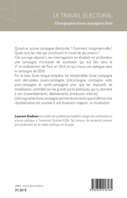Qu’est-ce qu’une campagne électorale ? Comment s’organise-t-elle ? Quels sont les rites qui constituent le travail de ses acteurs ? Cet ouvrage répond à ces interrogations en étudiant en profondeur une campagne municipale de succession qui eut lieu dans le Ve_arrondissement de Paris en 2014, et qui trouva son épilogue dans la campagne de 2020. Par le biais d’une longue enquête, les temporalités d’une campagne sont décryptées (de l’avant-campagne à l’après-campagne) ainsi que les dispositifs de mobilisation, contrôlés par les grands partis politiques, qui s’y donnent à voir (rassemblements, déploiements, production d’écrits). L’ethnographie d’une campagne permet de percevoir que la démocratie représentative est soumise à une évolution majeure : la ritualisation.