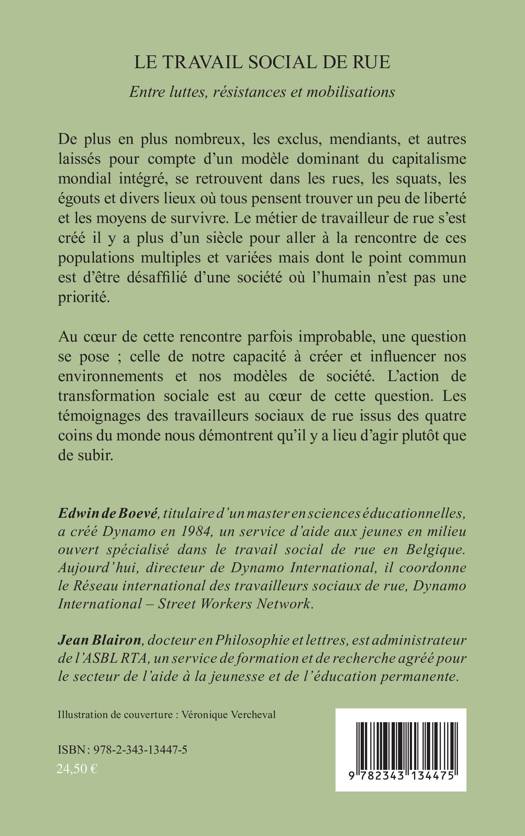 Le métier de travailleur de rue s'est créé pour aller à la rencontre de populations multiples et variées, mais désaffiliées d'une société où l'humain n'est pas une priorité. Cet ouvrage rassemble des témoignages de travailleurs de rue des quatre coins du monde, où l'action de transformation sociale est au cœur de l'action.