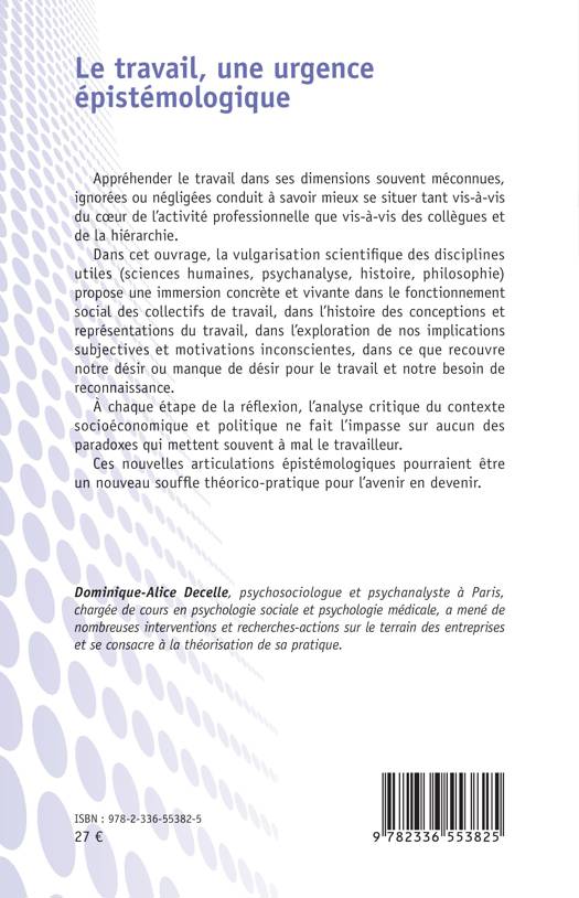 Appréhender le travail dans ses dimensions souvent méconnues, ignorées ou négligées conduit à savoir mieux se situer tant vis-à-vis du coeur de l'activité professionnelle que vis-à-vis des collègues et de la hiérarchie. Dans cet ouvrage, la vulgarisation scientifique des disciplines utiles (sciences humaines, psychanalyse, histoire, philosophie) propose une immersion concrète et vivante dans le fonctionnement social des collectifs de travail, dans l'histoire des conceptions et représentations du travail, dans l'exploration de nos implications subjectives et motivations inconscientes, dans ce que recouvre notre désir ou manque de désir pour le travail et notre besoin de reconnaissance. À chaque étape de la réflexion, l'analyse critique du contexte socioéconomique et politique ne fait l'impasse sur aucun des paradoxes qui mettent souvent à mal le travailleur. Ces nouvelles articulations épistémologiques pourraient être un nouveau souffle théorico-pratique pour l'avenir en devenir.