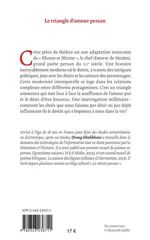 Cette pièce de théâtre est une adaptation innovante de Khosro et Shirine, le chef d'oeuvre de Nezâmi, grand poète persan du XIIe siècle. Une histoire incroyablement moderne où le destin, à travers des intrigues politiques, joue avec les désirs et les amours des personnages. Cette modernité intemporelle se loge dans les relations complexes entre différents protagonistes. C'est un triangle amoureux qui met face à face la souffrance de l'amour pur et le désir d'être heureux. Une interrogation millénaire: comment les choix que nous faisons par désir ou par dépit influencent-ils le destin qui s'imposera à nous dans la vie ?