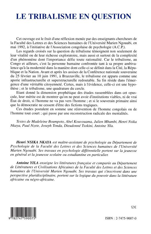 Cet ouvrage est le fruit d'une réflexion menée par des enseignants chercheurs de la Faculté des Lettres et des Sciences humaines de l'Université Marien Ngouabi, en mai 1992, à l'initiative de l'Association congolaise de psychologie (A.C.P.).