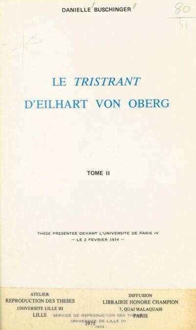 Le « Tristrant », d'Eilhart von Oberg (2) EBOOK