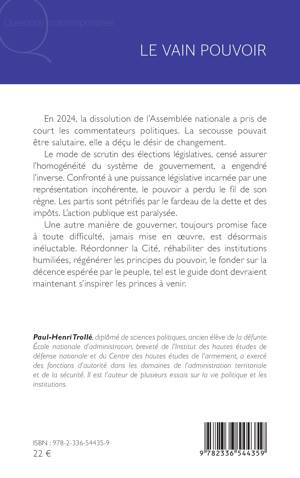 En 2024, la dissolution de l'Assemblée nationale a pris de court les commentateurs politiques. La secousse pouvait être salutaire, elle a déçu le désir de changement. Le mode de scrutin des élections législatives, censé assurer l'homogénéité du système de gouvernement, a engendré l'inverse. Confronté à une puissance législative incarnée par une représentation incohérente, le pouvoir a perdu le fil de son règne. Les partis sont pétrifiés par le fardeau de la dette et des impôts. L'action publique est paralysée. Une autre manière de gouverner, toujours promise face à toute difficulté, jamais mise en oeuvre, est désormais inéluctable. Réordonner la Cité, réhabiliter des institutions humiliées, régénérer les principes du pouvoir, le fonder sur la décence espérée par le peuple, tel est le guide dont devraient maintenant s'inspirer les princes à venir.