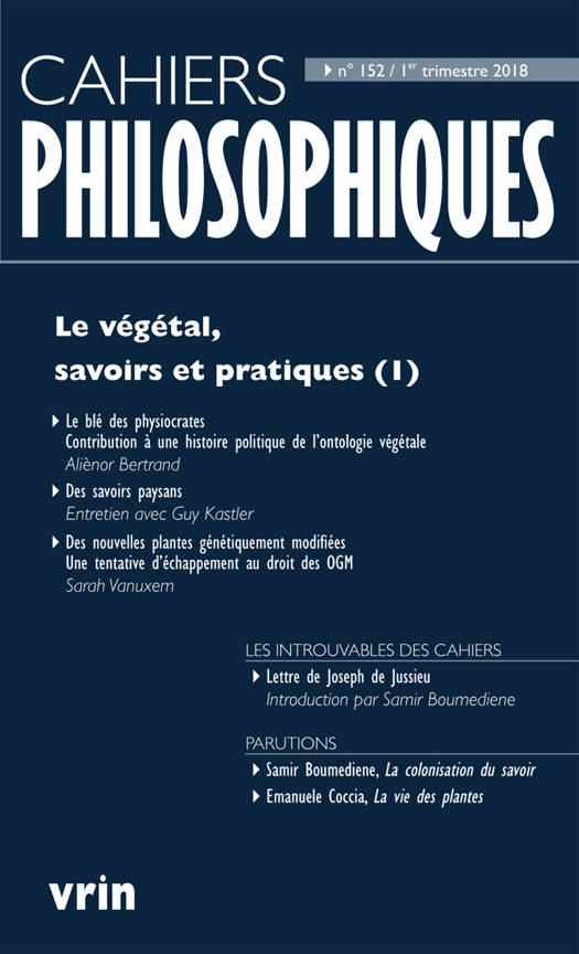 Plusieurs publications recentes en philosophie, en anthropologie ou en histoire contribuent a une critique de la hierarchie que nous etablissons sans meme y penser entre l'animal et le vegetal , tant notre culture est coutumiere d'une caracterisation des plantes par defaut, en toute ignorance de l'ampleur de notre dette envers elles. C'est sous l'angle d'une differenciation des savoirs ayant trait aux vegetaux et d'une analyse historique et politique des pratiques auxquelles ils sont associes que la reflexion est ici engagee. S'il est aise de planter et faire germer des graines - les animaux, le vent, les courants ne cessent d'ensemencer la Terre - cultiver une terre necessite un savoir complexe, attentif aux circonstances et adequat a la singularite d'un lieu. Savoir dont les paysans ont ete en grande partie depossedes au moment meme ou ils se sont vus imposer un modele industriel cense etre plus savant, plus rationnel et surtout plus rentable. La prise de conscience actuelle de l'importance et de la variete des ecosystemes ainsi que de l'apport irremplacable du vegetal invitent a questionner cette hierarchie des savoirs et des pratiques.