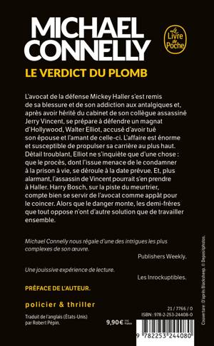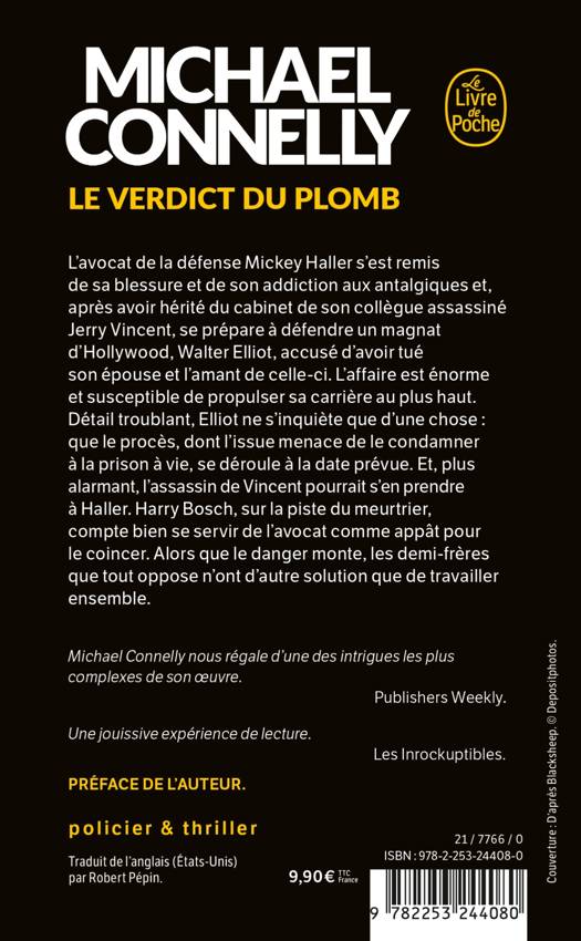 L’avocat de la défense Mickey Haller s’est remis de sa blessure et de son addiction aux antalgiques et, après avoir hérité du cabinet de son collègue assassiné Jerry Vincent, se prépare à défendre un magnat d’Hollywood, Walter Elliot, accusé d’avoir tué son épouse et l’amant de celle-ci. L’affaire est énorme et susceptible de propulser sa carrière au plus haut. Détail troublant, Elliot ne s’inquiète que d’une chose : que le procès, dont l’issue menace de le condamner à la prison à vie, se déroule à la date prévue. Et, plus alarmant, l’assassin de Vincent pourrait bien s’en prendre à Haller. Harry Bosch, qui recherche ce meurtrier, compte bien se servir de Haller comme appât pour le coincer. Alors que le danger monte, les demi-frères que tout oppose n’ont d’autre solution que de travailler ensemble.