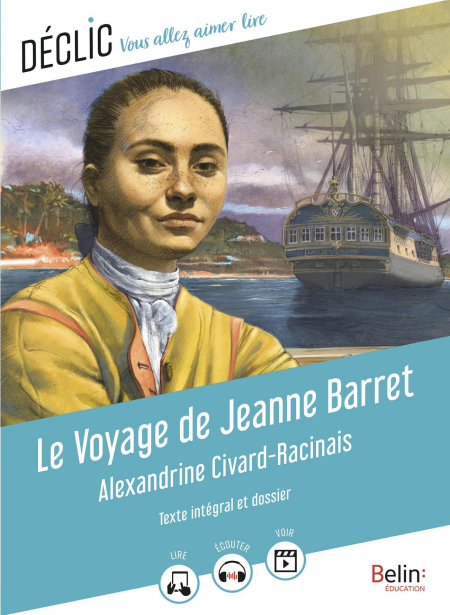 Dossier pédagogique de Virginie Manouguian Le 1er février 1767, le botaniste Philibert Commerson et son assistant Jean Baré embarquent pour suivre l’expédition de Louis-Antoine de Bougainville à travers le monde. Mais voilà, Jean n’est autre que Jeanne, une femme ! Combien de temps parviendra-t-elle à dissimuler sa véritable identité, à une époque où seuls les hommes sont acceptés à bord ? Un texte poignant qui met en lumière le destin d’une femme à la poursuite de ses rêves malgré tout. LIRE Le texte enrichi de nombreuses images dans une mise en page vivante et aérée COMPRENDRE Des questionnaires et des activités ludiques pour s’approprier le texte RETENIR Un dossier complet et accessible pour retenir l’essentiel PROLONGER Un groupement de textes et des conseils pour compléter la lecture + ACCOMPAGNER De nombreux compléments numériques pour aider les élèves dans la lecture (le texte lu par un comédien, des extraits vidéo à visionner sur Internet, des versions epub de l’ouvrage et du texte accessible aux élèves DYS disponibles dans les librairies numériques).