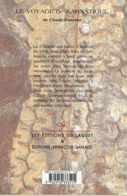 La Chapelle-aux-saints. C'est dans ce lieu qu'a été mise à jour la sépulture d'un homme de type Néandertal. Claude Duneton en prend prétexte pour raconter, avec humour, la fin d'un vieillard préhistorique.