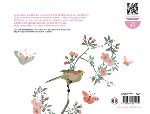 Un origami perché sur le rebord d’une fenêtre rêve de voir la mer. Mais comment faire pour voler lorsqu’on a des ailes en papier ? Qu’importe ! Un coup de vent, et voilà l’origami qui s’élance, partant à la découverte du monde extérieur…