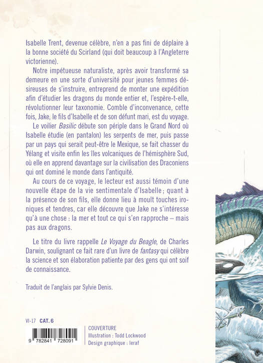 Notre impétueuse naturaliste, après avoir transformé sa demeure en une sorte d’université pour jeunes femmes désireuses de s’instruire, entreprend de monter une expédition afin d’étudier les dragons du monde entier et, l’espère-t-elle, révolutionner leur taxonomie. Comble d’inconvenance, cette fois, Jake, le fils d’Isabelle et de son défunt mari, est du voyage.