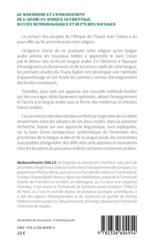 Le contact des peuples de l'Afrique de l'Ouest avec l'islam a eu pour effet qu'ils ont embrassé cette religion. L'exigence stricte de ne pratiquer cette religion qu'en langue arabe amena les nouveaux fidèles à apprendre le saint Coran par le détour des écrits en langue arabe. En l'absence à l'époque d'enseignants professionnels et de locuteurs natifs de cette langue, les premiers érudits du Fouta-Djalon ont développé une méthode d'apprentissage et ont fondé les premiers centres d'enseignement des écoles coraniques. Toutefois, plus tard, est apparue une nouvelle méthode fondée sur des ouvrages didactiquement optimisés, alliant l'enseignement et l'accès à la langue arabe sous la forme des médersas et d'écoles franco-arabes. La coexistence des deux tendances finit par engendrer des rivalités envenimées entre les adeptes de ces deux écoles. Dans la présente recherche, basée sur une approche linguistique, sont expliquées, sur la base d'une comparaison systématique de l'inventaire des phonèmes de la langue arabe et de la langue peule, les contraintes susceptibles d'engendrer des difficultés articulatoires et intonatives chez les locuteurs du peul pour réaliser certaines consonnes arabes.