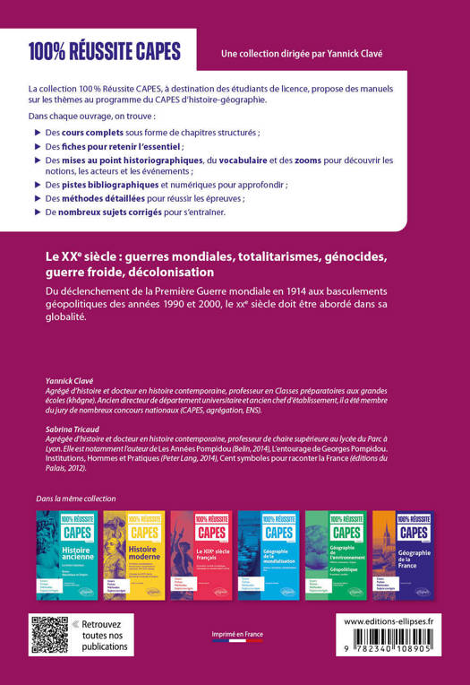 La collection 100 % Réussite CAPES, à destination des étudiants de licence, propose des manuels sur les thèmes au programme du CAPES d’histoire-géographie.