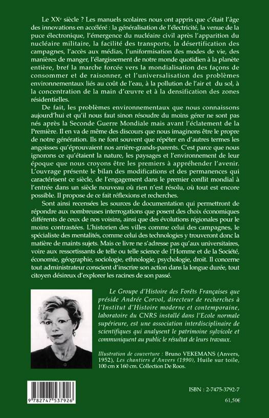 Les problèmes environnementaux que nous connaissons aujourd'hui ne sont pas nés après la Seconde Guerre Mondiale mais avant l'éclatement de la Première. Il en va de même des discours que nous imaginons être le propre de notre génération. Ils ne font souvent que répéter en d'autres termes les angoisses qu'éprouvaient nos arrière-grands-parents. L'ouvrage présente le bilan des modifications et des permanences qui caractérisent ce siècle. Il propose de ce fait réflexions et recherches.