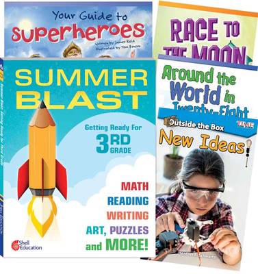 Prepare for Third Grade with this fun and engaging summer reading bundle! The Summer Blast workbook is full of colorful activity pages covering essential reading, writing, and math skills. It also includes fun tips and activities for the whole family. The four engaging fiction and nonfiction books will keep students reading all summer long. Parents appreciate the teacher-approved activity book and readers to keep their child engaged and learning over summer vacation. Great for homeschool curriculum, at-home learning, extra skill practice, or to prevent learning loss. The bundle includes: Summer Blast: Getting Ready for Third Grade; Outside the Box: New Ideas!; Your Guide to Superheroes; Around the World in Twenty-Eight Pages; and Race to the Moon